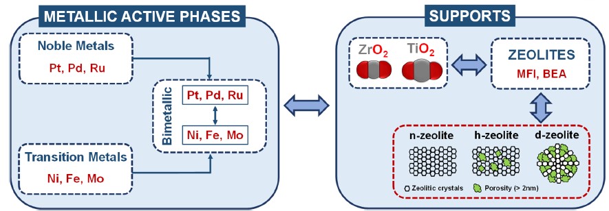 Preparar catalizadores multifuncionales incorporando fases activas metálicas (metales nobles, de transición y bimetálicos) en los soportes zeolíticos desarrollados en el WP2.