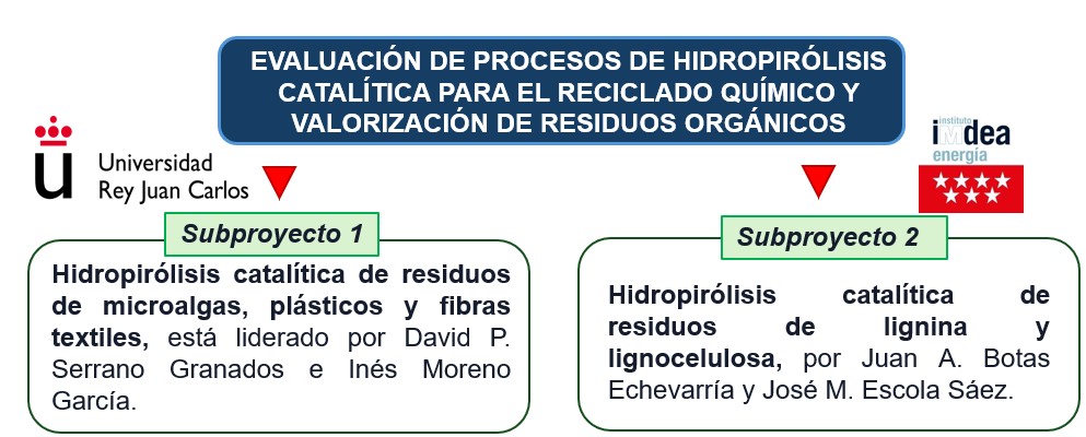 El proyecto HYPY-CAT se divide en dos subproyectos con objetivos específicos pero complementarios. Ambos subproyectos tienen una colaboración sinérgica y serán responsables de la síntesis de catalizadores.